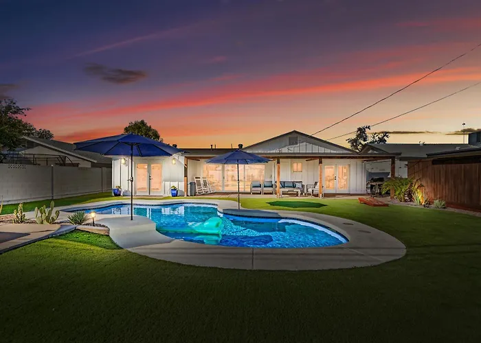 Situata a 1 km dal Jaycee Park, Tempe Modern Farmhouse Villa offre accesso a una piscina esterna. La villa, che offre agli ospiti un patio soleggiato, si trova a una distanza di 4 km da Big Surf.